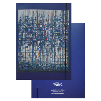 Pasta arquivadora em cartolina para os seus documentos em formato A4, lombada com elástico vertical e inclusão na capa de reprodução da obra "Ce que le vent m'a dit" de Manuel Cargaleiro, em exposição no Museu Cargaleiro!